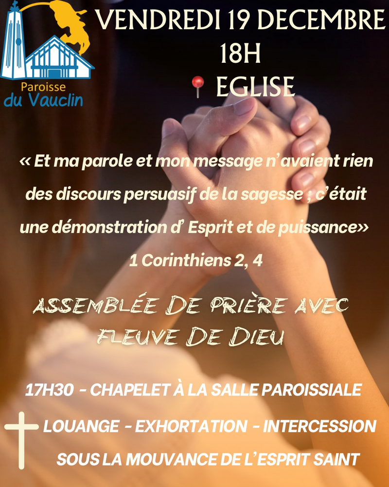 🗓️ Vendredi 19 Décembre 2025 ⏰ 17h30 à 20h 📍Eglise Le groupe de prière Fleuve de Dieu t’invite à les rejoindre pour vivre un moment puissant [...]