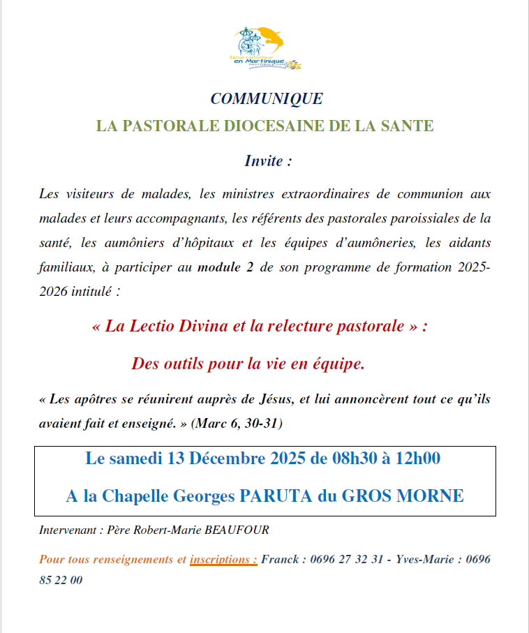 COMMUNIQUE LA PASTORALE DIOCESAINE DE LA SANTE Invite : Les visiteurs de malades, les ministres [...]