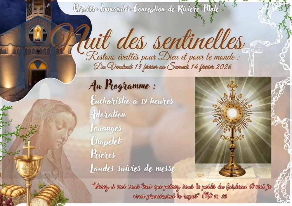 La Paroisse de Rivière Pilote organise la Nuit des sentinelles du vendredi 13 février au samedi 14 février 2026 : Restons éveillés pour Dieu et pour [...]