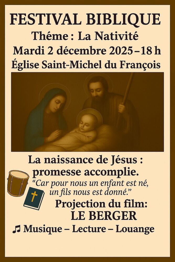 Le Festival Biblique aura lieu le Mardi 2 décembre 2025 à 18h à l'Église Saint-Michel du François. Le thème : "La naissance de Jésus : promesse [...]