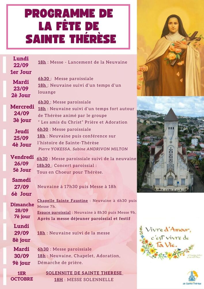 Lundi02/10Messe en l’honneur de notre Sainte Patronne : Sainte Thérèse de l’Enfant Jésus
