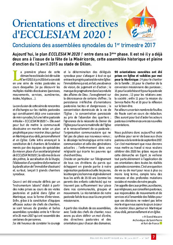 ÉGLISE EN MARTINIQUE du 18 juin 2017 – n° 547 26