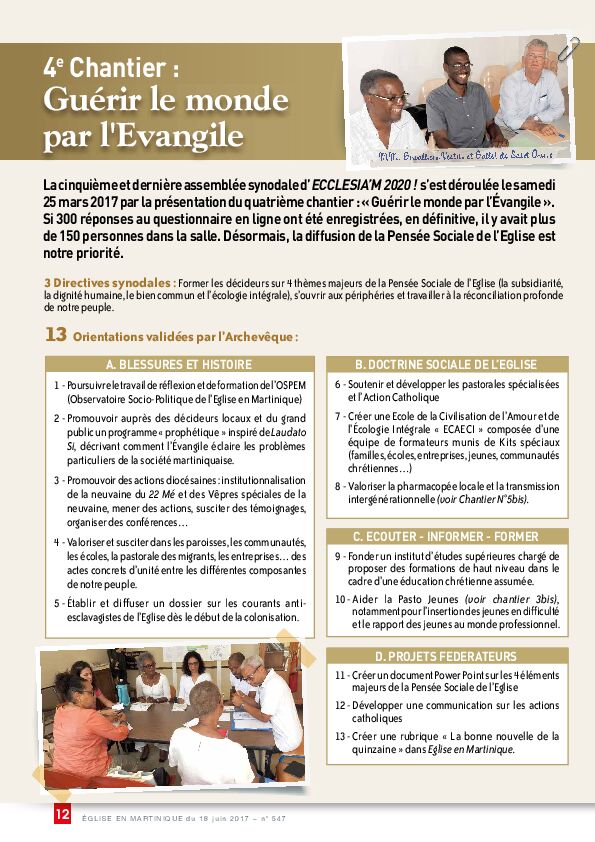 Pendant l’année pastorale, Eglise en Martinique s’est fait l’écho de