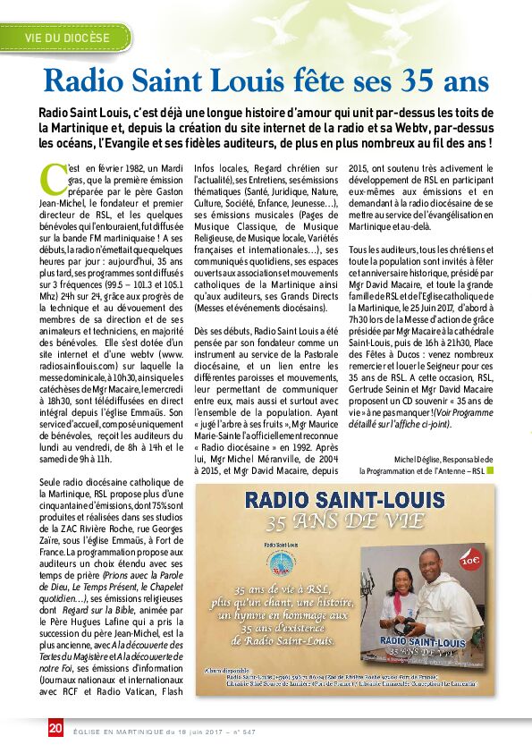 Tél. : 05 96 71 86 04 - Fax : 05 96 71 86 05 - Courriel : contact@radiosaintlouis.com