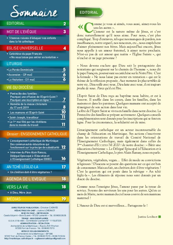 I.S.S.N. 0759-4895 – Commission paritaire N° 1115L87225 ADMINISTRATION – RÉDACTION Archevêché de la Martinique – Rue du R.P. Pinchon 97200 Fort de France - Tél. 05 96 63 70 70