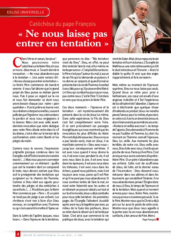 • Catéchèse du pape François « Ne nous laisse pas entrer en tentation »
