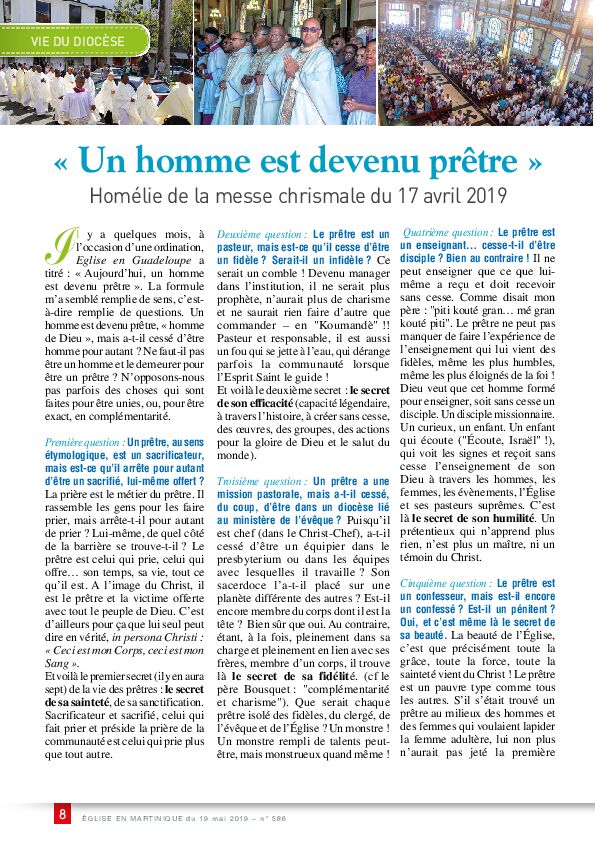 ÉGLISE EN MARTINIQUE du 19 mai 2019 – n° 586 19