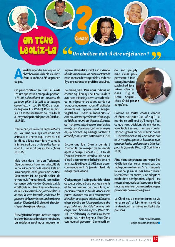 de consommer. Mais au fait, un chrétien doit-il être végétarien ?