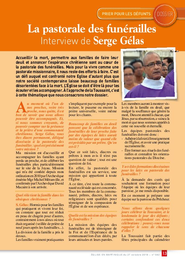 • La pastorale des funérailles Interview de Serge Gélas