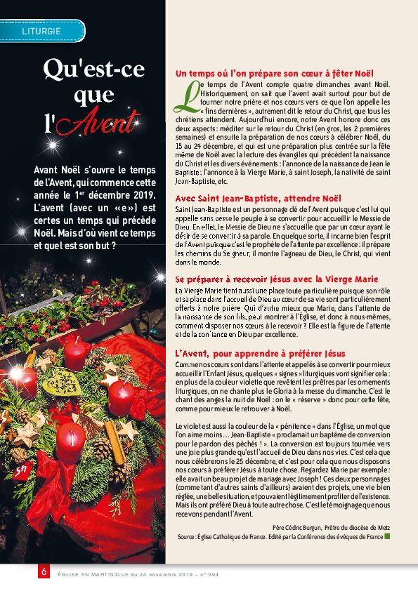 de l’Avent, en effet, Eglise en Martinique continue à prodiguer ses