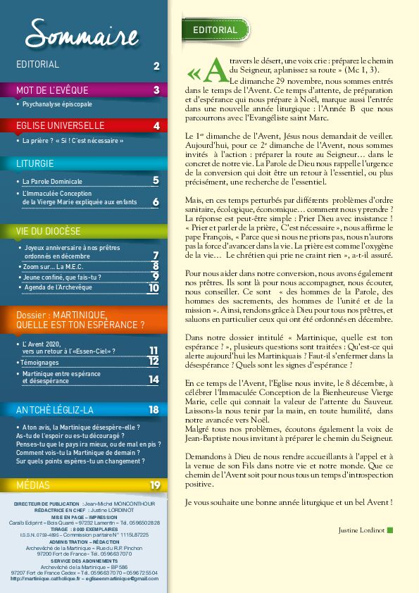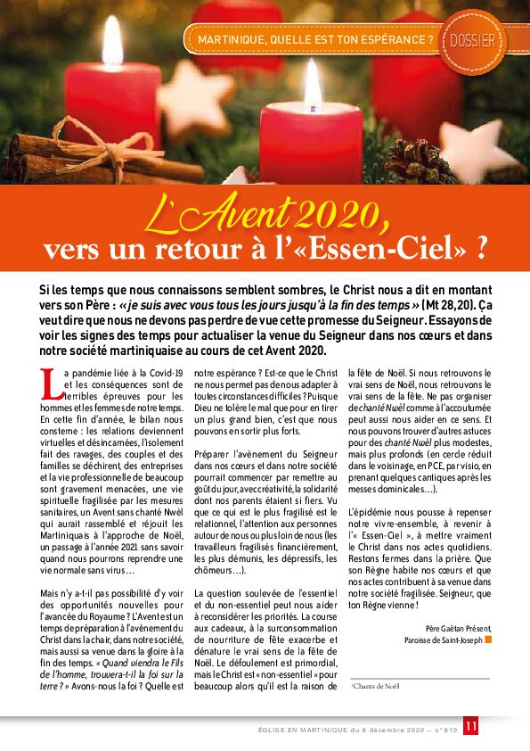 ÉGLISE EN MARTINIQUE du 6 décembre 2020 – n° 610 19