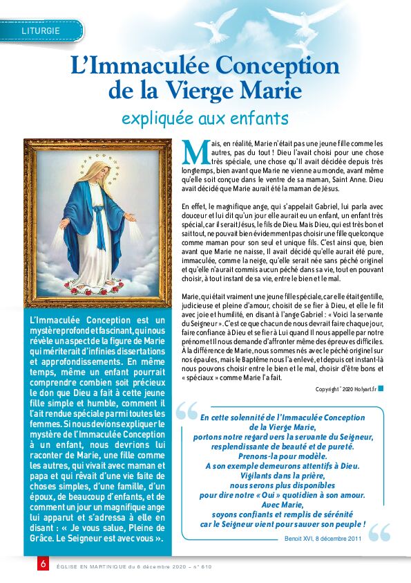 • L’Immaculée \bonception de la Vierge Marie expliquée aux enfants