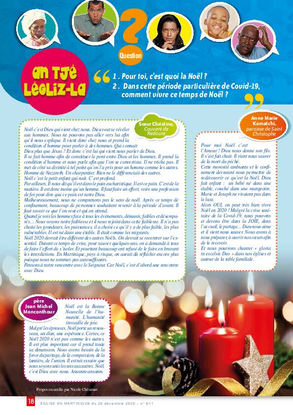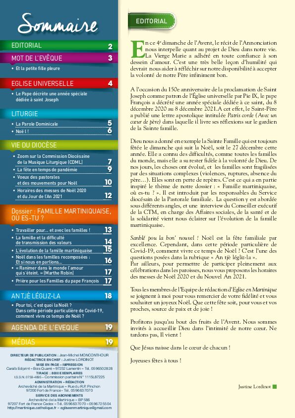 Tous les membres de l’Equipe de rédaction d’Eglise en Martinique