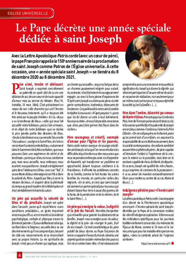 • Le Pape décrète une année spéciale dédiée à saint Jose\nph