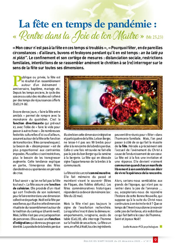 Dans cette période particuli\nère de Co\bid-19, comment \bi\bre ce temps de Noël ?