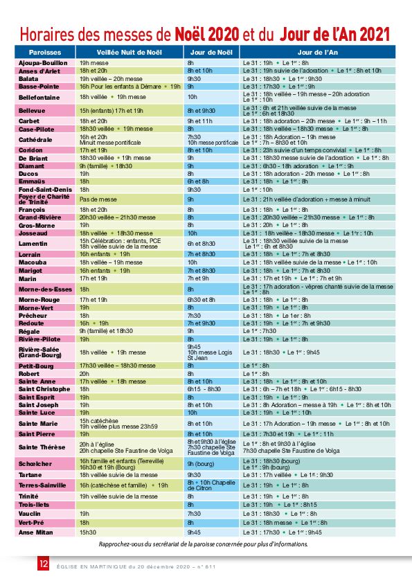 • Horaires des messes de Noël 2020 et du Jour de l’An 2021