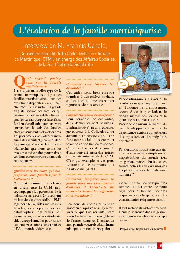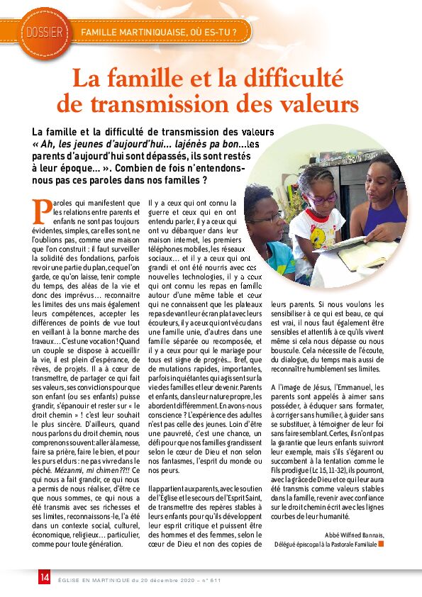 inspiré le thème de notre dossier : « Famille martiniquaise,