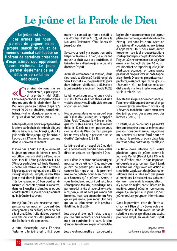 ÉGLISE EN MARTINIQUE du 14 février 2021 – n° 615 19