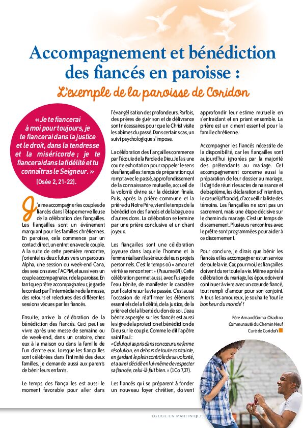 • Accompagnement et bénéd\ciction des fi ancés en paroisse \b