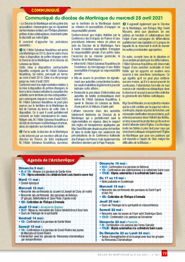 ÉGLISE EN MARTINIQUE du 9 mai 2021 – n° 621 19
