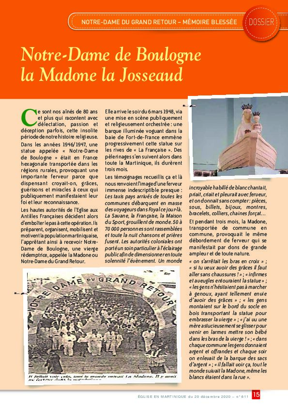 année où la Martinique a reçu Notre-Dame de Boulogne,