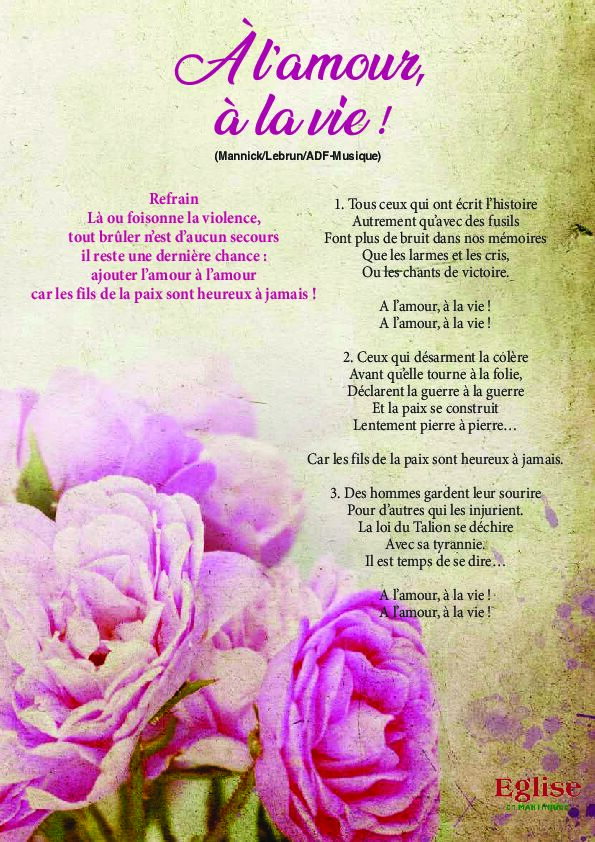 Car les fils de la paix sont heureux à jamais. 3. Des hommes gardent leur sourirePour d’autres qui les injurient.La loi du Talion se déchire Avec sa tyrannie.