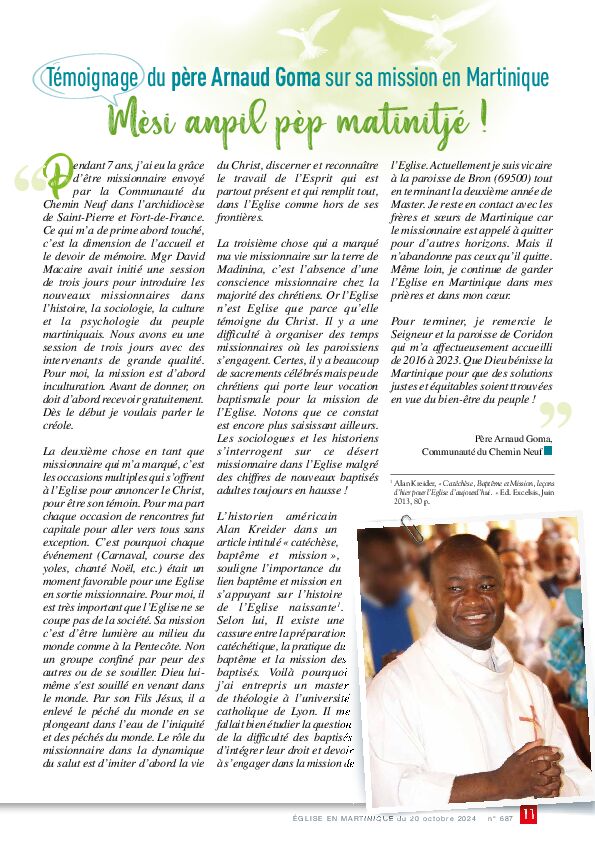 - Témoignage du père Arnaud Goma sur sa mission en Martinique