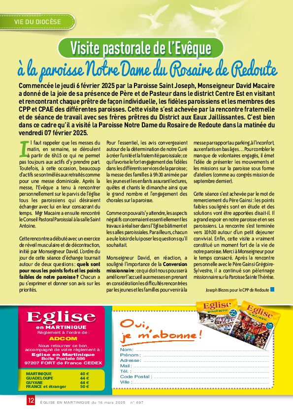 Pour vous abonner à la revue diocésaine "Eglise en Martinique" et le recevoir directement chez vous en avant-première :