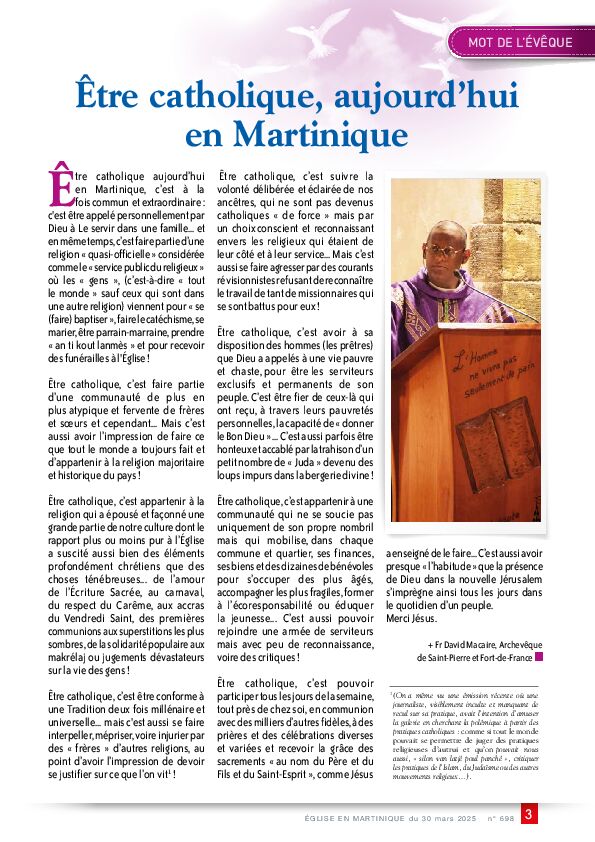 - MOT DE L'ÉVÊQUE - "Être catholique, aujourd’hui en Martinique "