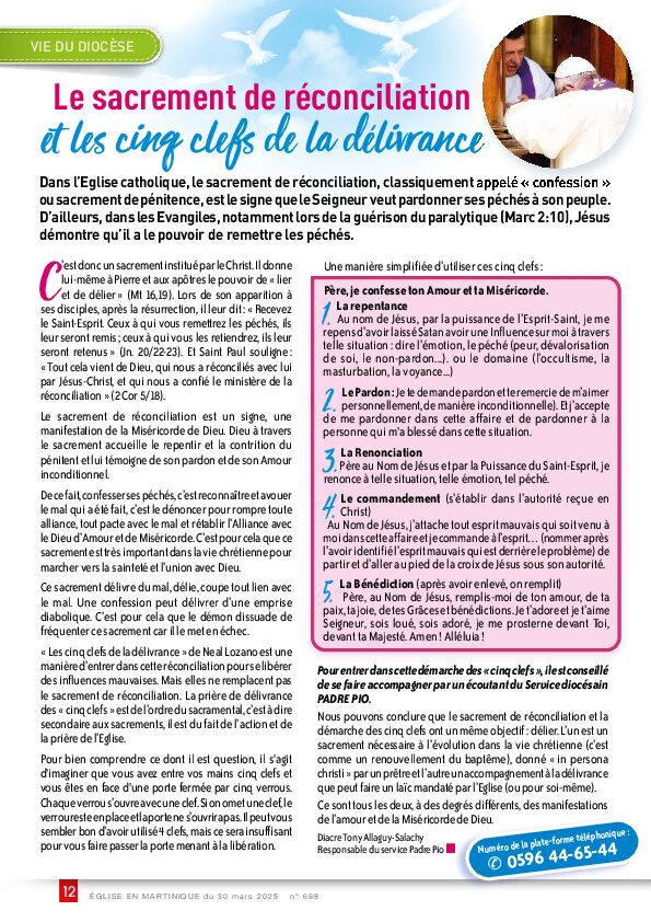 - Le sacrement de réconciliation et les cinq clefs de la délivrance