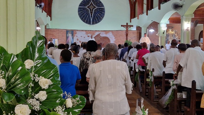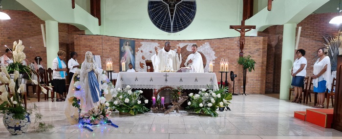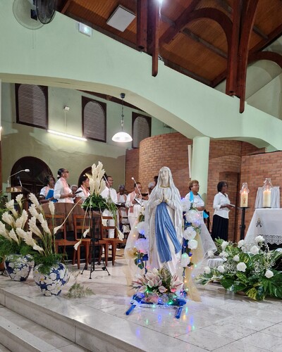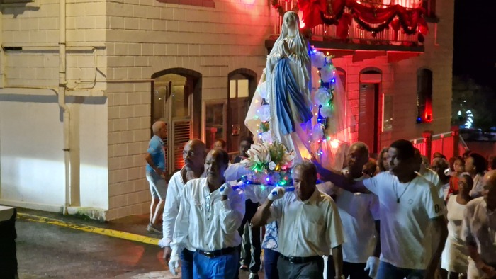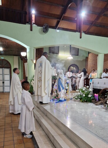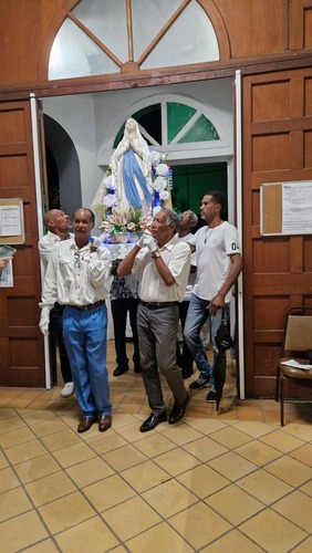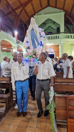 La communauté paroissiale de Notre-Dame de la Nativité de Schoelcher était doublement en fête car c'est le jour choisi par son curé, le père Benjamin François-Haugrin, pour réintégrer à l'église du bourg la statue de Notre-Dame de Lourdes offerte à cette église en 1887 et qui avait entre temps été déplacée.