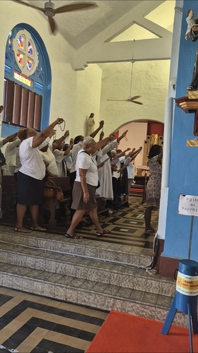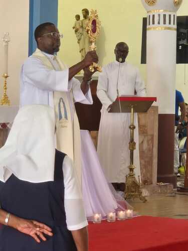 Renforcés par les propos du Père Eugène Adingra, c’est avec ferveur que nous avons accueilli les reliques, c’est à dire le corps de Saint Antoine de Padoue au milieu de nous, pour réciter ensemble le Chapelet de Combat qui chasse toutes les puissances ennemies et ouvre nos cœurs à toutes les grâces que le Seigneur nous offre par l’intercession de Saint Antoine de Padoue.